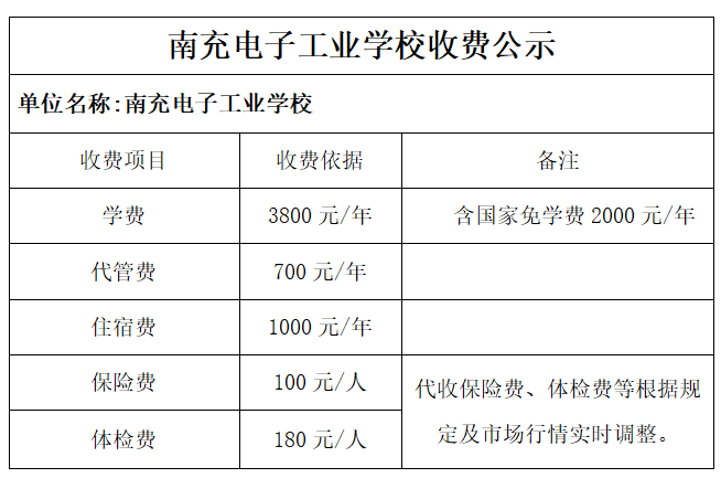 南充电子工业学校收费公示