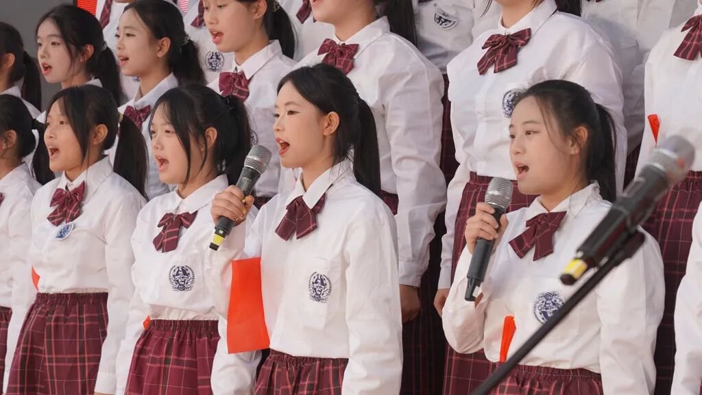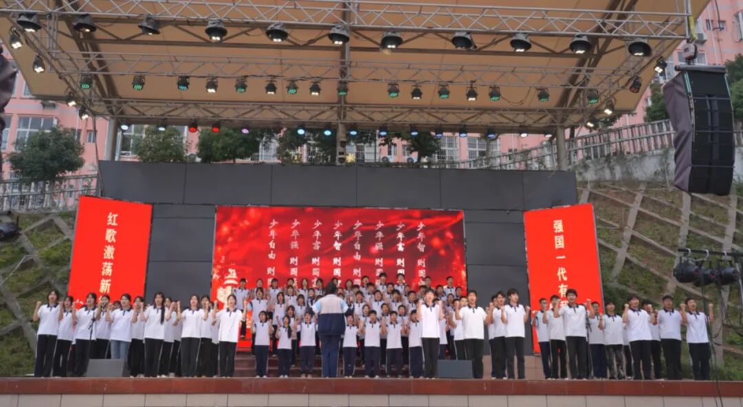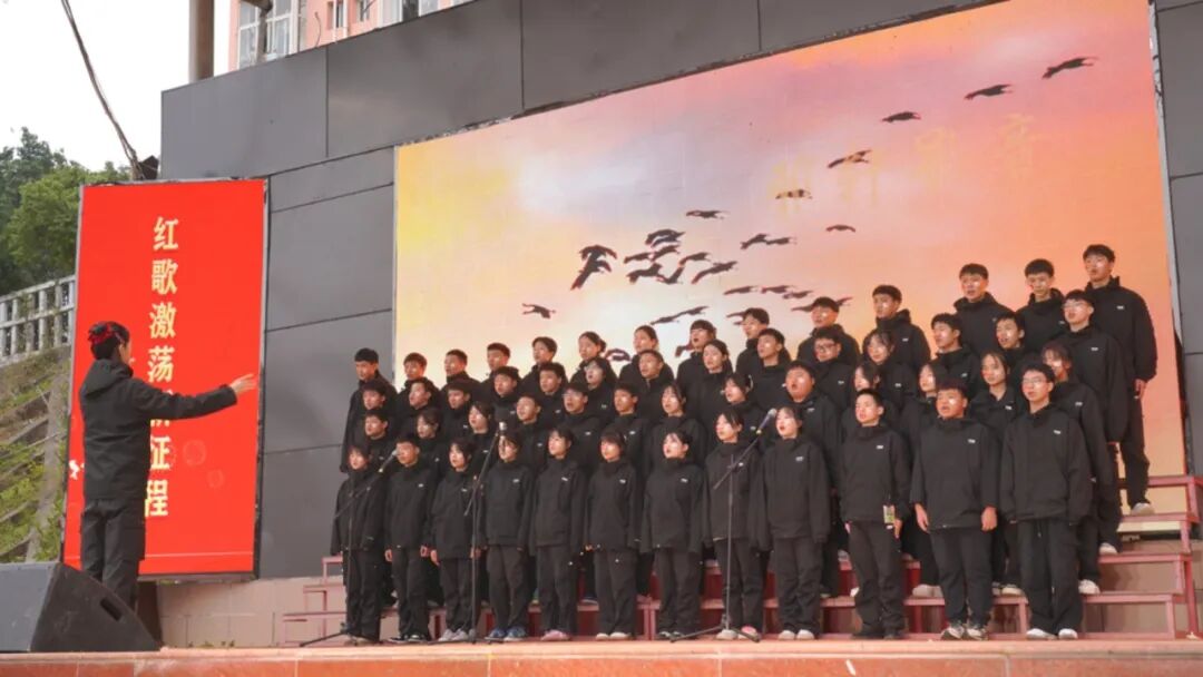 比赛现场,歌声飞扬,气氛庄重而热烈。各参赛队伍依次登台,用饱满的热情演绎了一首首经典红歌。《歌唱祖国》的旋律响起时,同学们用铿锵有力的歌声表达对祖国母亲的深沉眷恋;《国家》的合唱中,“家是最小国,国是千万家”的歌词在操场回荡,传递着家国一体的深厚情感;《我爱你中国》的深情演绎,将对祖国的热爱化作一个个动人音符;而《少年中国说》则展现了新时代青年的昂扬斗志,“少年强则国强”的呐喊激起全场共鸣。