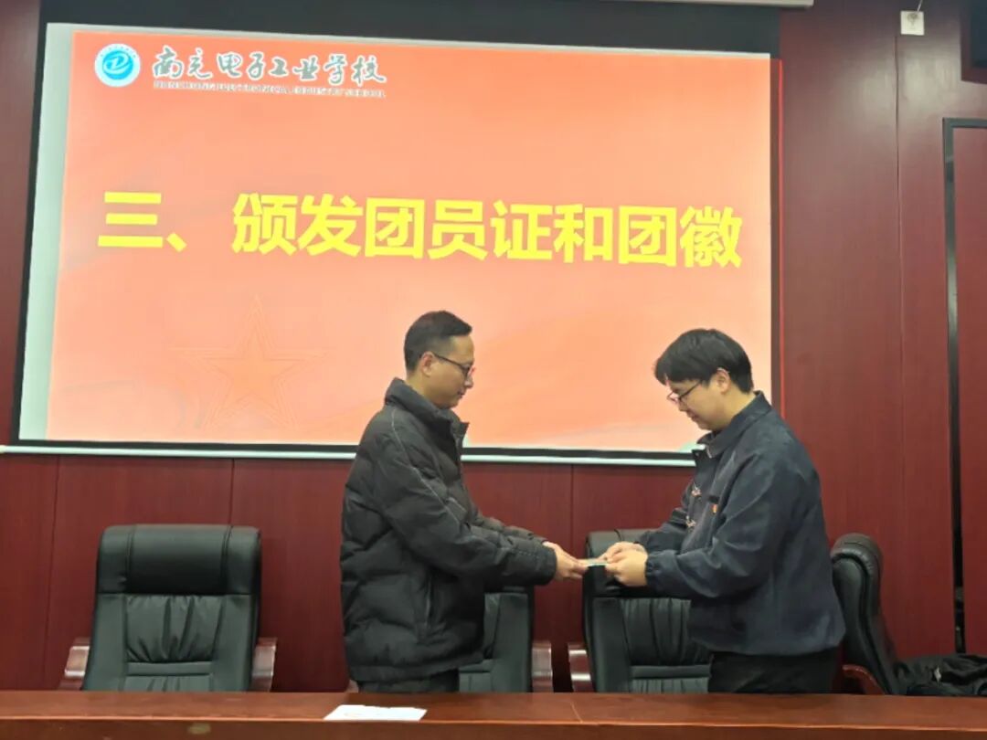 紧接着,学校教师代表及优秀团员代表为新团员们郑重佩戴团徽、颁发团员证。当熠熠生辉的团徽镶嵌在胸前,鲜红的团员证递交到手中时,新团员们的脸上都洋溢着自豪与坚毅的神情,这一刻,他们正式成为中国共产主义青年团的光荣一员。