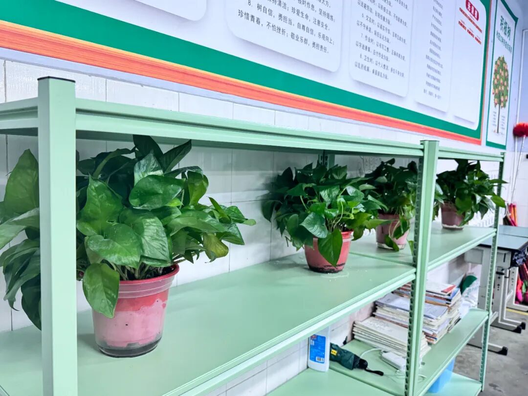 走进教室,窗明几净的环境、整齐划一的桌椅、错落有致的绿植映入眼帘;班级文化墙创意十足,或展示着学生的书画作品,或张贴着班级公约与励志标语,处处彰显着各班独特的文化底蕴与精神风貌。同学们精心布置的图书角、荣誉栏,更是成为教室中亮眼的风景线,既丰富了课余生活,又凝聚了班级向心力。